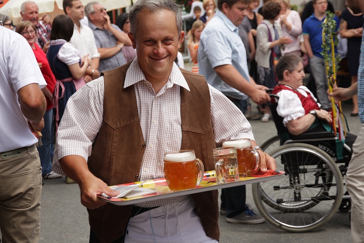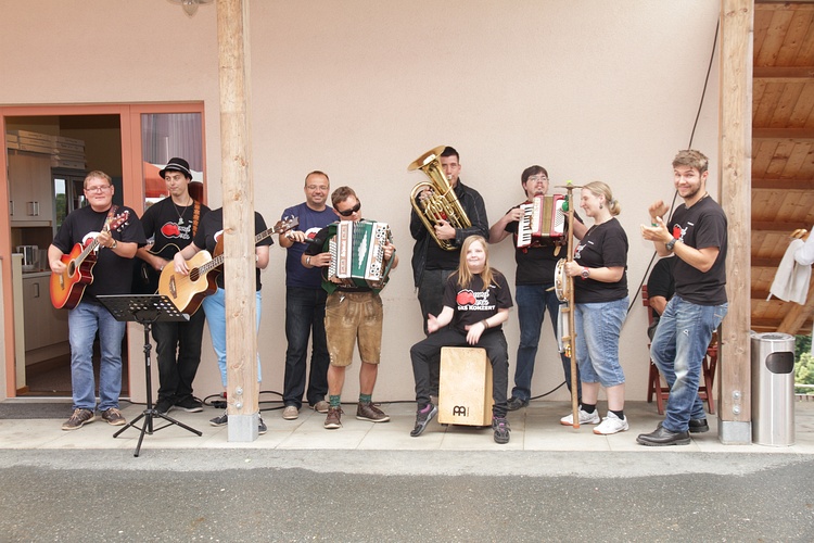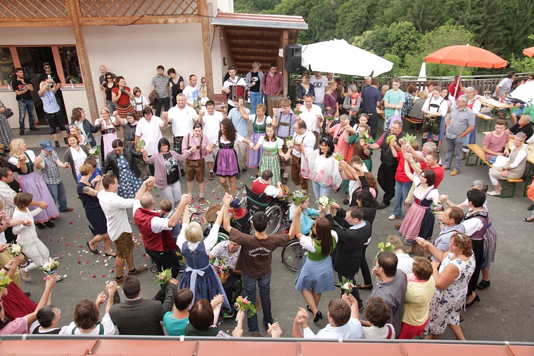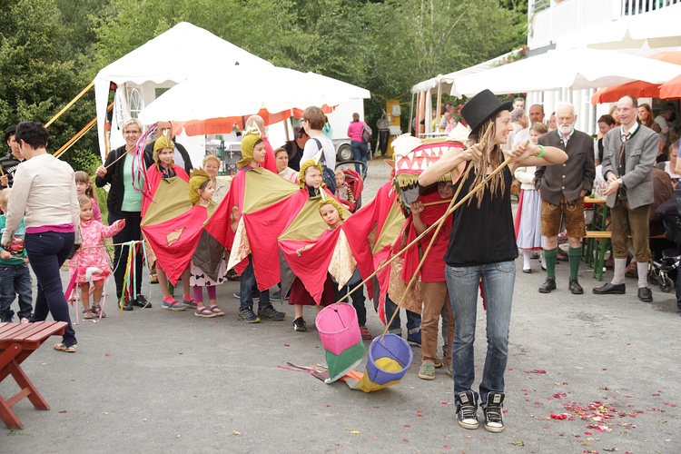 Das 15. Blütenfest der Tageswerkstätte Stephanus wurde wieder traditionell mit der Polonaise der insgesamt 54 Mitarbeiter eröffnet. Die 32 betreuten Mitarbeiter konnten bei den Volkstänzen ihr Können und ihre Freude am Tanzen präsentieren.